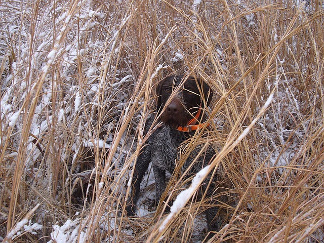 Step 3 Now that your dog understands what you are doing, pepper an area with bumpers or birds to get your dog really excited. If you do not have birds, attach duck feathers to your bumpers. Use the space that you have available to complete this drill - it can be effectively done in a yard that is 25 yards long, or 500 yards long. Start in low cover and send your dog into the highly peppered area by giving the proper command. The most important aspect of this drill is that your dog learns to use his or her nose. If you knock a duck into heavy cover but do not know where it is, your dog should understand the concept of “find ‘em” or “hunt ‘em up.” Step 4 Finally, the last step in teaching a dog to quarter in the field is to throw a bumper into thick cover and walk away. Stay away from the area for 10 - 15 minutes. Then, when you turn back, give your dog the command to find the bumper. Your dog should learn that whichever direction you are facing, he or she will find a bird.