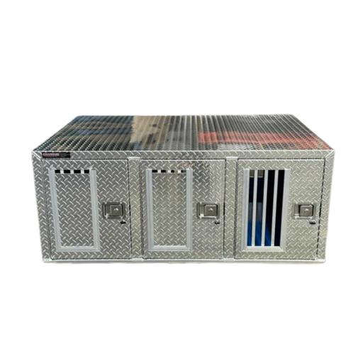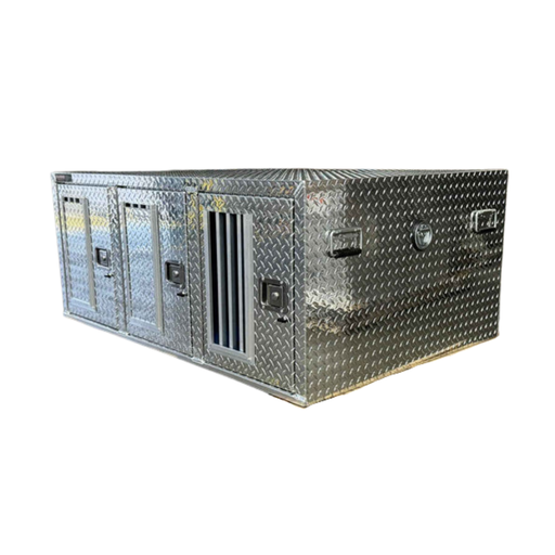 Double Compartment with Crossover Top Storage 71 W x 27 D x 25 H | Diamond Tread Aluminum | Standard Vents | Made in the USA The Owens Dog Box 5507...