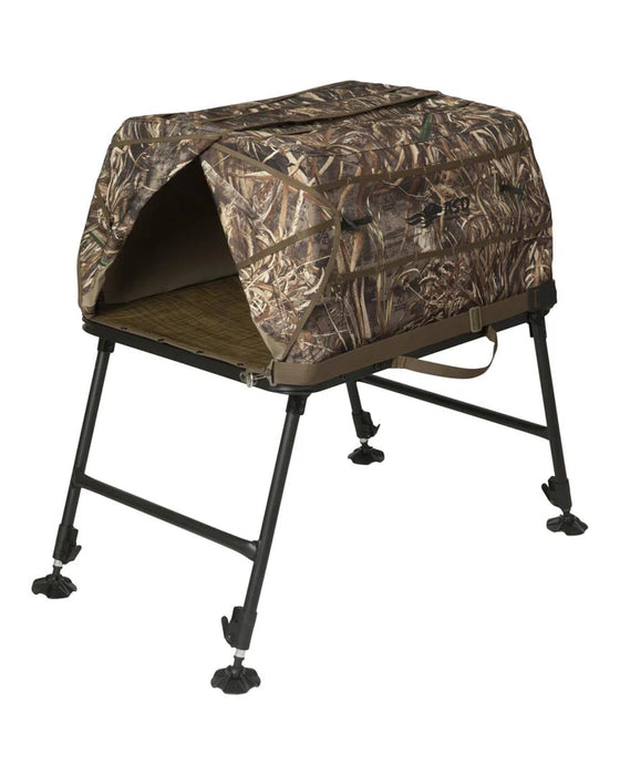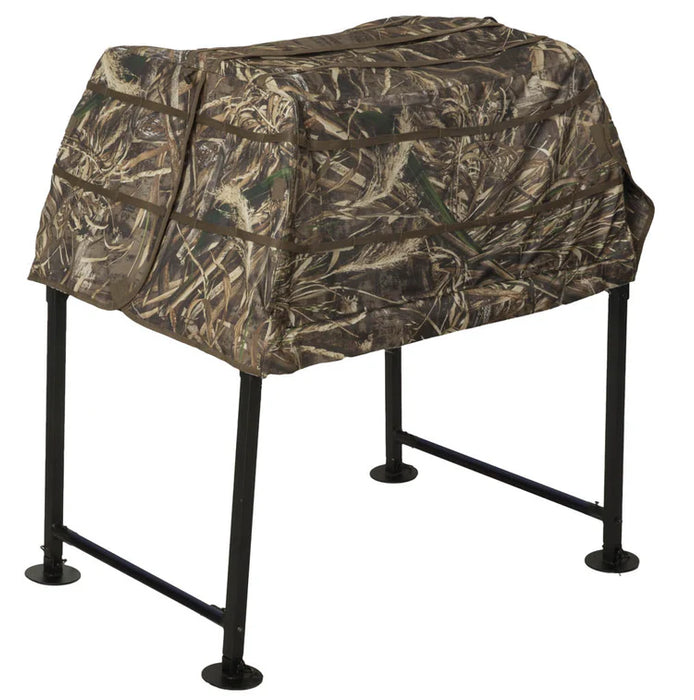 This elevated dog blind is designed to provide both comfort and camouflage, making it a must-have for waterfowl hunters.