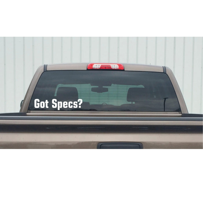 Our Got Specs?, Goose Hunting Decal is Custom Die Cut on our High Speed Vinyl cutters from outdoor grade high performance adhesive vinyl. Available in Several color and size options. Our Got Specs?, Goose Hunting Decal is made to be applied to the outside of your automobile windows, or can be applied to any hard smooth surface. Very popular for Corn Hole / Bag Game Boards. Colors of these decals will last for years and not fade.