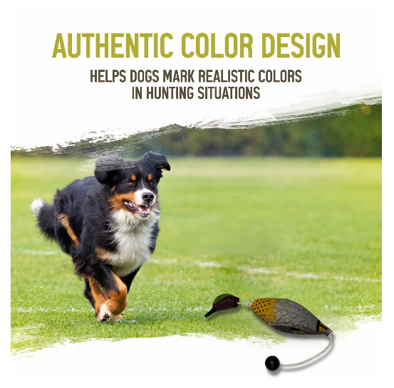 The HuntEmUp Ultimate Green Wing Teal is designed to match the size and weight of a real teal, providing an authentic training scenario for your dog. This makes the training sessions more practical and prepares your dog for actual hunting scenarios.