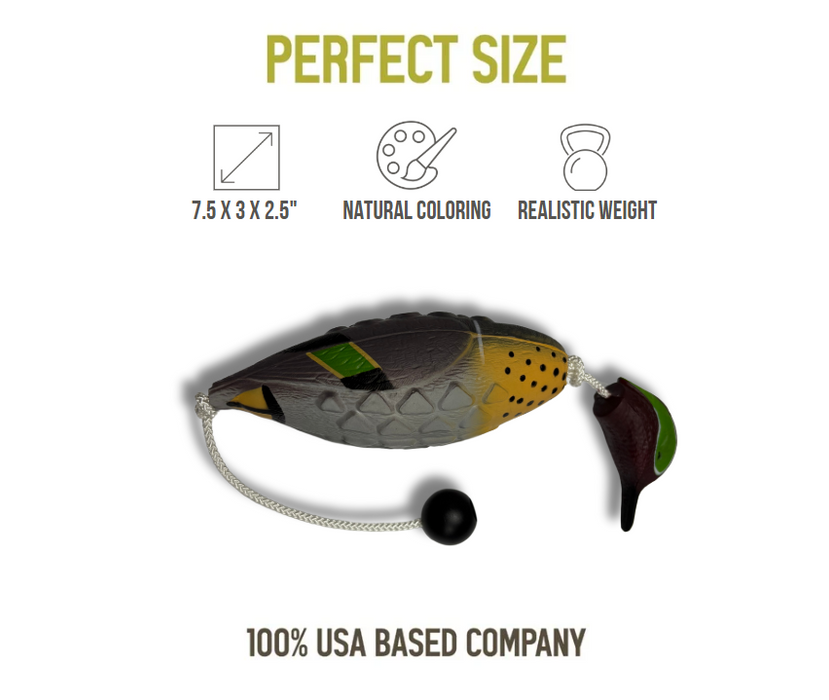 The Ultimate Greenwing Teal is meticulously crafted to mirror the actual size, shape, and appearance of a green-winged teal. This design ensures that your dog becomes accustomed to the feel of a real bird, which will aid them during actual hunting conditions.